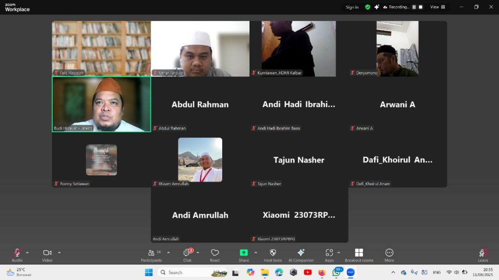 Jakarta, 11 Agustus 2025 – Pengurus Pusat Himpunan Dai Muda Indonesia (PP HDMI) malam ini menggelar sosialisasi resmi terkait agenda Musyawarah Nasional (Munas), Musyawarah Kerja Wilayah (Mukerwil), dan Musyawarah Kerja Daerah (Mukerda) HDMI 2025. Kegiatan dilaksanakan secara daring melalui Zoom Meeting dan diikuti oleh para Ketua Pengurus Wilayah (PW) HDMI se-Indonesia.